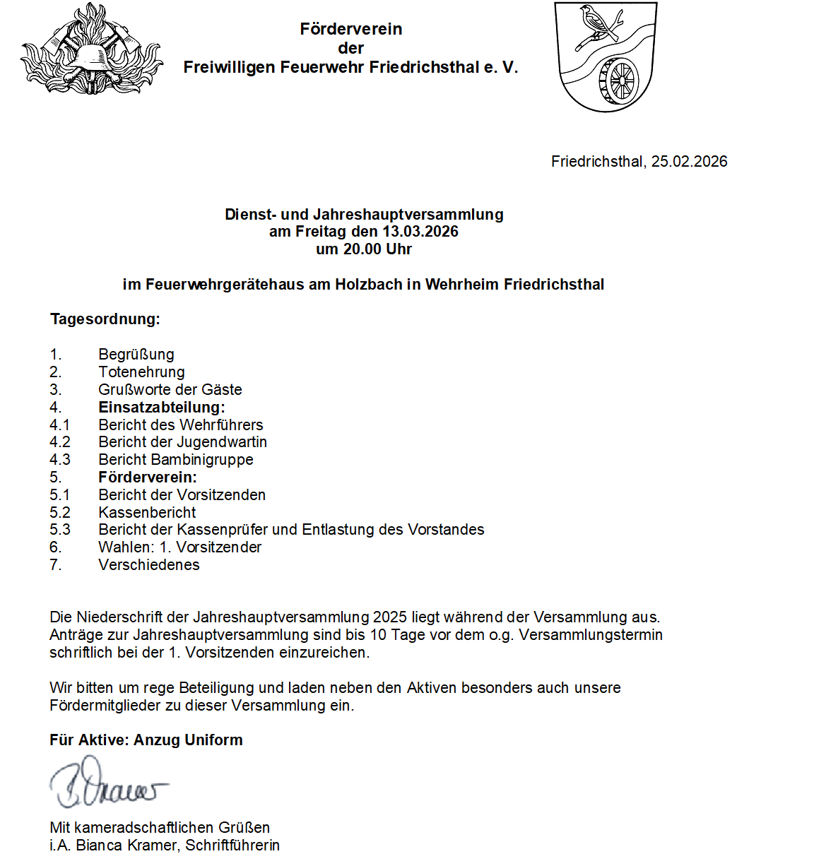 Jahreshauptversammlung 13.03.2026